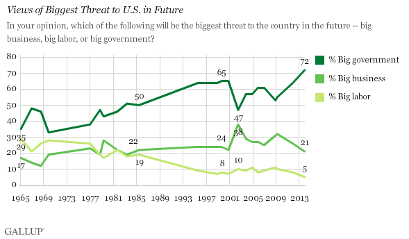 - One of the best books I read last year was Nicco Mele's The End of Big, which reinforced for me the difficulty in deciding which I think is the greatest threat to mankind: big government, big corporations or big labor. For the rest of the U.S. population, for the moment, big government appears to be winning. Hopefully Mele is right and the coming years will see the end of big.