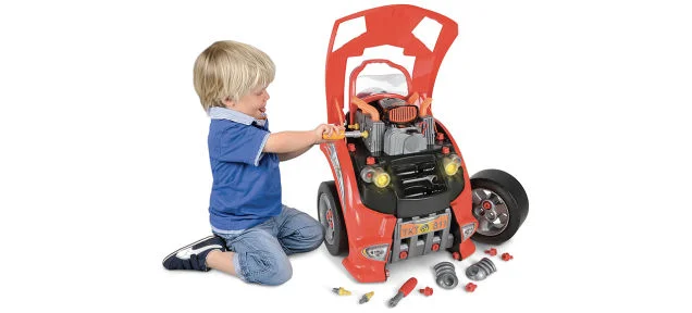 Powered by eight AAA batteries so it's not going to fill a playroom with toxic gas fumes, this playset features the front-end of a fake car complete with an engine under the hood where kids can pretend to change the oil, swap the air filter, check the dipstick, and even remove the spark plugs and various nuts and bolts. When the repairs are all complete they can even test start the engine to make sure it purrs like a toy kitten. And at $120 it's a lot cheaper and considerably safer than handing them a bunch of tools and telling them to have fun under the hood of your minivan.