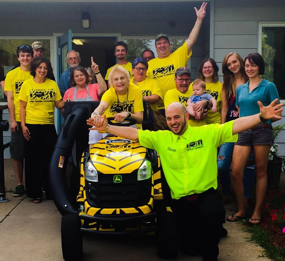 Photo from Iron Range Makerspace's Facebook page. Andrew is front and center, in the neon green shirt.