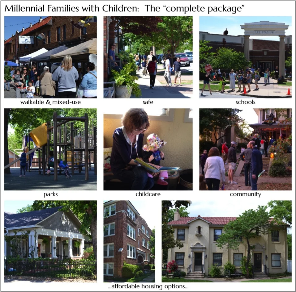 "In a previous article, I discussed how affordable urban living for millennial families with children has the potential to become one of the largest market demands in the near future. Moreover, as these urban, forward-thinking, entrepreneurial millennials with kids get priced out of the major metropolitan cities, they are now beginning to relocate to 2nd- and 3rd-tier cities, often in traditional ‘collar neighborhoods’ on the edges of downtown. These neighborhoods are inclusive of many or all of the desired lifestyle elements that urban millennials with children want (e.g., walkable and mixed-use with quality kid-friendly amenities, institutions, and infrastructure). Continuing with our case study of Tulsa, Oklahoma, let’s now discuss more specifically a number of lifestyle options these millennial families are finding in 2nd- and 3rd-tier cities.