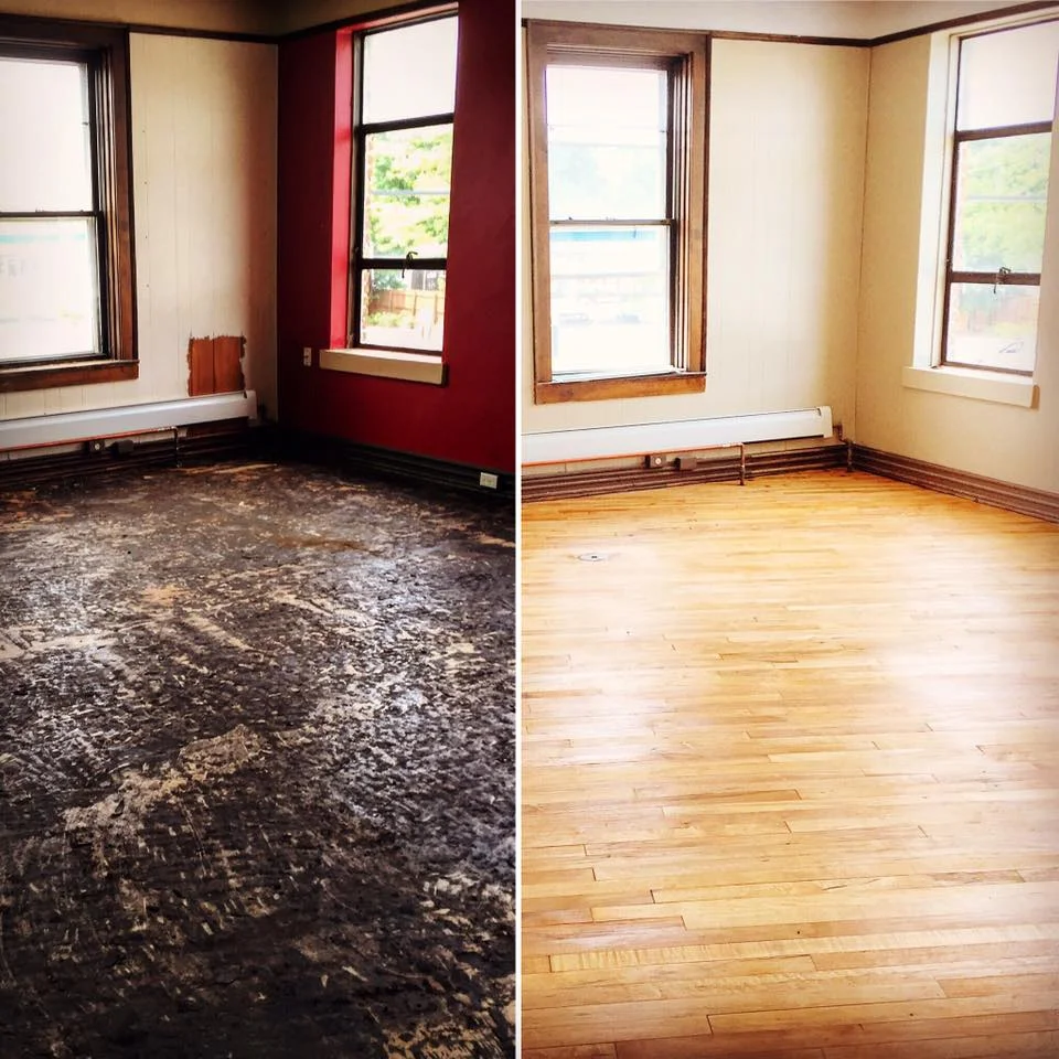 Before and After photos of an upstairs room in the building. (Image from The Norwegian Facebook page)