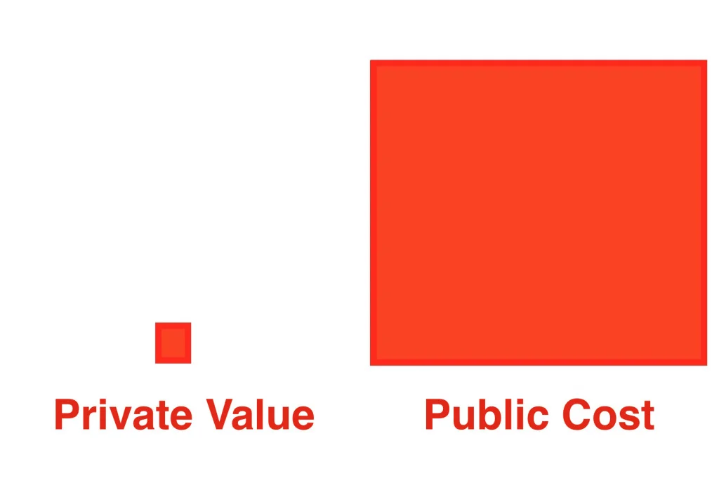 There are people who advocate for small scale incremental infill development that could double or triple the productive capacity of a place gradually over time. A one story building could become a two story building. A two story building could become a three story building. Small cottages could be built in back gardens. A vacant lot could be filled with a small productive structure with a business on the ground floor and an apartment or two upstairs. It could be intimate and charming like the Norman Rockwell Main Street towns of a previous era. But the current regulatory framework doesn’t permit such a process. Neither does the popular culture that sees such infill as a direct assault on the American Dream. The cost and complexity of navigating multiple opaque and unresponsive bureaucracies is generally greater than the ultimate value of such modest projects. So it’s simply not going to happen.