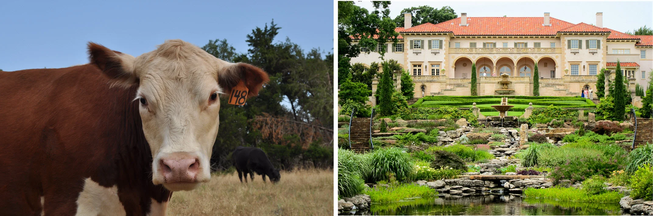 Which of the above best represents Oklahoma? Answer: Both. (Photo of cattle by Sarah Kobos and photo of Tulsa's Philbrook Museum of Art by Eric Wittman)