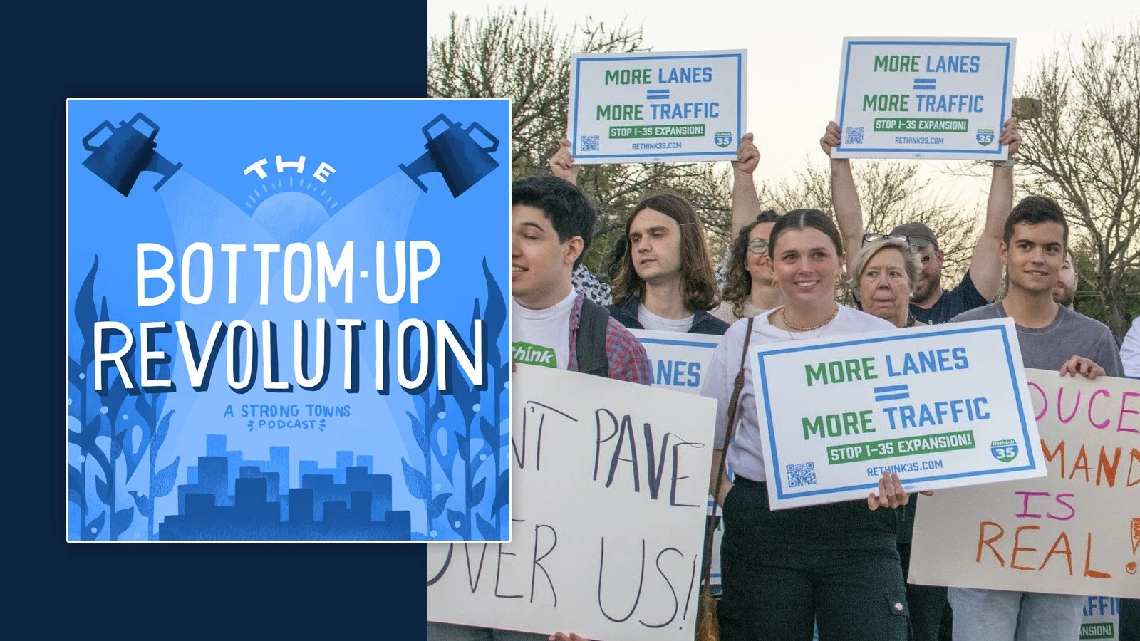 On this week’s episode of The Bottom-Up Revolution, we’ve got a special double interview with Adam Greenfield and Miriam Schoenfield, who are both freeway fighters based in Austin, Texas. Greenfield is a transportation and land-use advocate and co-founder of Rethink35. Schoenfield, who is a board member at Rethink35, is a professor at The University of Texas at Austin. Challenging the expansion of a massive highway is one of the biggest missions one can take on in any city, so we’re excited to have Greenfield and Schoenfield on the show to talk about this important work that they’re doing.