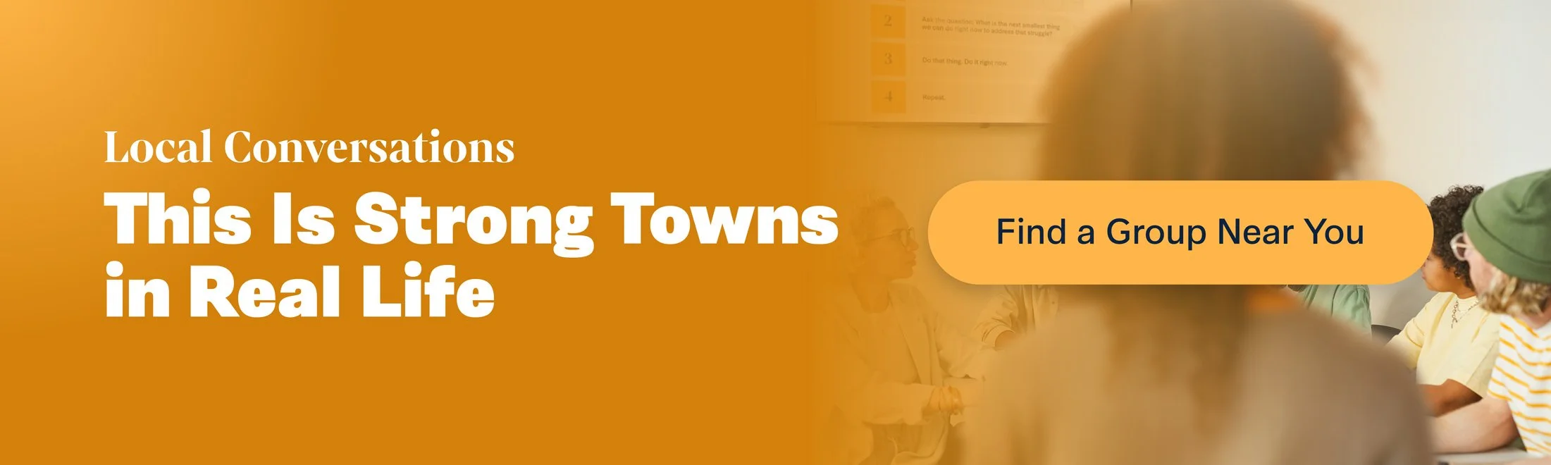There’s work to be done to make your own town a Strong Town, and you don’t have to go it alone. Thousands of people across North America are working to make their community a better place. Join with others in your area, or start your own Local Conversation.